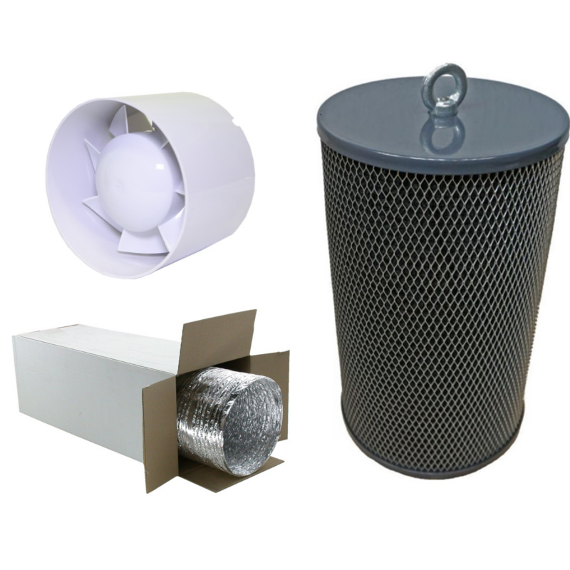 Комплект вентиляции с канальником 300м3/ч и угольным фильтром 350м3/ч для очистки воздуха в гроубоксе.